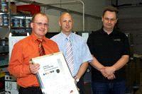 Montag 07. Mai 2007 - Am 3. Mai 2007 überreichte Dipl. Ing. Marko Graumann vom Verband Druck & Medien NRW die Zertifizierungsurkunde über die Zertifizierung nach ISO 12647-2 (ProzessStandard Offsetdruck) an Firmeninhaber Andreas Büchel.