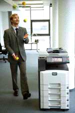Mit dem eingebauten Farb-Scanner können bequem wichtige Farbdokumente eingescannt und über das Netzwerk versendet bzw. archiviert werden. Der optionale Dokumenteneinzug ermöglicht darüber hinaus doppelseitiges Scannen: Bis zu 50 Seiten (300 dpi/A4) können so pro Minute in hoher Auflösung eingescannt werden und dank der Multi-Process-Funktion ist der Nutzer sogar in der Lage, Kopier-, Fax- und Druckjobs gleichzeitig bearbeiten und ausgeben zu können.