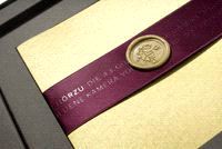 Es ging darum, eine glamouröse Institution, die künstlerische Qualität auszeichnet, spürbar zu übersetzen, beschreibt Marco Kuehne, Geschäftsführer Kreation Paperlux, die Aufgabe. Schlüsselmotiv der Papeterie für die Verleihungszeremonie wurde die Little Brown Box. Bei ihrer Umsetzung kooperierten die Designer exklusiv mit der Deutsche Papier und verwendeten GMUND COLORS in verschiedenen Grammaturen für die Box wie für alle Papiere und Karten des Events. Farblich akzentuierten sie die goldfarbene Corporate Identity des traditionsreichen Medien-Events für 2008 mit den Trendfarben Nougat und Purpur. Um den Glamour der international besuchten Gala zu transportieren, setzte das Team auf haptisch und visuell ausgefallene Präge- und Gravurverfahren.