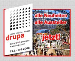 Donnerstag 17. April 2008 - Schon jetzt locken zahlreiche Hersteller und Lösungsanbieter mit zahlreichen Ankündigungen anläßlich der drupa 2008. Um nicht den Überblick über die für einen selbst relevanten Produkte und Dienstleistungen der internationalen Aussteller zu verlieren, bieten wir Ihnen die Möglichkeit, sich vorab auf unserer Homepage über die wichtigsten Neuheiten zu informieren. Eine farbig hinterlegte Hallenübersicht auf der rechten Seite unseres Online-Portals hilft Ihnen dabei, sich zu orientieren. Mit nur einem Mausklick erhalten Sie sämtliche Firmen aufgelistet, die in dieser Halle ausstellen. Unterhalb jedes einzelnen Herstellers finden sich die von ihnen produzierten Warengruppen wieder und geben Ihnen so einen umfassenden Einblick in das Portfolio jedes einzelnen Ausstellers. Mit einem Klick auf eine dieser Warengruppen erhalten Sie alle Aussteller aufgelistet, die ebenfalls Produkte für dieses Segment anbieten, so daß Sie hiermit sehr schnell einen Überblick über die relevanten Wettbewerber und deren Plazierung auf der Messe erhalten.