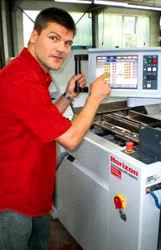 Geschäftsführer Hagen Schübelin, Buchbinderei Idupa Schübelin: extrem kurze Rüstzeiten durch einfache Bedienerführung am 10,4-Zoll-Farb-Touchscreen.