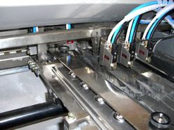Durch den Einsatz von Schneidwerkzeugen kann zusätzlich auch im Doppelnutzen gearbeitet werden. Sollte ein Streifenausschnitt erforderlich sein etwa weil die Nutzen flächig bedruckt sind so ist das durch den Einsatz einer Streifenausschnitt-Vorrichtung ganz einfach zu realisieren. Die Breite des Ausschnitts ist dabei variabel von 4 bis 10 mm einstellbar. Der Clou: Die Leistung der Falzmaschine vervielfacht sich je nach Anzahl der Nutzen.