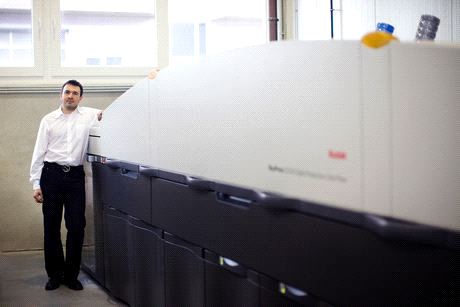 Eine weitere Lösung für das fünfte Druckwerk steht auf Rudolf Bauers Wunschzettel ganz oben: KODAK NEXPRESS Dimensional Printing. Dieses neue Verfahren bildet auf ausgewählten Grafikelementen, Text oder Farbbildern eine erhabene, fühlbare Schicht. Damit lässt sich beispielsweise die originale Oberflächenstruktur von Objekten in Bildern nachstellen. Für den Chef von marsmedia bietet das Verfahren vielseitige Perspektiven: Ich bin überzeugt, dass Dimensional Printing für alle möglichen Produkte interessant ist Visitenkarten, Folder, exklusive Eintrittskarten und vieles mehr. Dabei ist es ein wirtschaftlicher und extrem schneller Prozess.
