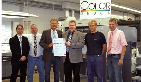 Samstag 13. Juni 2009 - Die Color Druck GmbH aus Holzminden hat mit Erfolg die PSO-Zertifizierung nach ISO 12647-2 bestanden. Das Unternehmen konnte im Rahmen der PSO-Prüfung sowohl bei den Vorstufenarbeiten als auch beim Druck gute Ergebnisse erzielen.