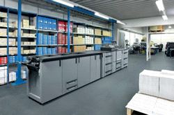 Die Produktionsdrucksysteme ermöglichen die Ausstattung mit umfangreichen Finishing-Optionen. Dazu gehören ein Heftfinisher mit automatischem Heftklammern-Längenbeschnitt sowie ein Broschürenfinisher für die Broschürenerstellung, die Integration vorgedruckter Bögen und den Frontbeschnitt. Weiterhin bietet sich eine Zuschieß-, Loch- und Falzeinheit sowie eine GBC-Locheinheit, die mit austauschbaren Stanzwerkzeugen ausgestattet, die Lochungen für eine offline Spiralbindung in vollen Systemgeschwindigkeit ins bedruckte Papier bringt.
