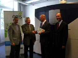 CGS Publishing Technologies International übergab vor einigen Tagen ORIS Press Matcher Pro und ORIS Certified Proof Software an die Höhere Graphische Bundes-Lehr- und Versuchsanstalt in Wien. Die Software wird dort in Verbindung mit einer Xerox iGen4 und einer Konica Minolta Bizhub in der praxisorientierten Ausbildung der Druck- und Medientechnik eingesetzt. Durch das ORIS Farbmanagement gelang eine perfekte Simulation des Prozessstandards Offsetdruck und damit auch die Erfüllung der entsprechenden Anforderungen in Bezug auf Qualität und Wiederholbarkeit. Heiner Müller, CGS‘ Director Communications & Business Development anlässlich der offiziellen Übergabe der Software in Wien: „Die höhere Graphische in Wien bietet seit langem eine praxisgerechte Ausbildung in der Druck- und Medientechnik auf höchstem Niveau und hat sich einen entsprechenden Ruf über Österreichs Grenzen hinaus erworben. Neben den vermittelten allgemeinbildenden, technischen und kaufmännischen Inhalten ist die Institution vor allem für Ihren Praxisunterricht bekannt. Hier arbeiten die Schülerinnen und Schüler in kleinen Gruppen an realen hausinternen Aufträgen und sind für die gesamte Abwicklung von der Auftragsannahme bis zur Auslieferung verantwortlich. So wird der Produktionsunterricht auch häufig als ‚Übungsfirma‘ bezeichnet. Es ist dieser Praxisbezug und die Lerninhalte, die sich am aktuellen Stand der Technik orientieren, die eine Partnerschaft für Lieferanten und Hersteller so attraktiv machen. Wir von CGS freuen uns, dass wir mit unseren Produkten dazu beitragen können den Auszubildenden näherzubringen, was Farbmanagement im Digitaldruck heute leisten kann. Moderne Digitaldrucksysteme müssen sich heute dem Vergleich mit konventioneller Drucktechnik stellen und werden vielfach im Verbund eingesetzt. So werden Vorabauflagen und personalisierte Produkte digital gedruckt; anschließende größere Auflagen wiederum im Offsetverfahren hergestellt. In beiden Fällen muss ein vordefinierter Standard wie die ISO Norm exakt eingehalten werden.“
