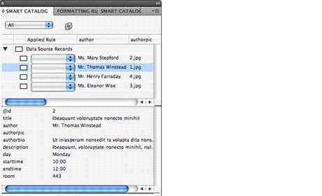 Eine Formatierungsregel erlaubt Designern die Definition von Filtern für die präzise Selektion der Daten, die aus einer Textdatei (.csv), einer XML- oder ODBC-Quelle oder aus dem Enterprise Publishing System von WoodWing übernommen werden sollen. Über eine solche Regel kann auch angegeben werden, wie diese Daten etwa unter Verwendung der Zeichenformate von InDesign formatiert werden sollen. Da mehrere dieser Regeln in einem Set kombiniert werden können, ist die Kontrolle über das Ergebnis äußerst präzise. Die gleiche Funktionalität steht übrigens für die Platzierung von Bildern zur Verfügung.