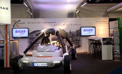 Im Rahmen des Sponsoring hat Baier Digitaldruck für ELMAR eigens konzipierte Visitenkarten, Flyer, Supersize – Poster und eine Messewand zur Verfügung gestellt. Rolf H. Kübler von AAI – Automotive Aerospace Industries, exzellenter Kenner der Automotive Branche, Dozent und Mentor des Elmar-Projektes, ist von der Resonanz auf die Messewand begeistert: Beim Genfer Automobil Salon im März 2010 waren wir mit unserem Projekt und der Präsentation das absolute Highlight. Der Messestand spricht für sich und wird nun zusammen mit ELMAR in Deutschland auf Tournee gehen.