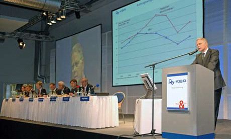 Positiv registrierten die Anteilseigner, dass KBA 2009 aus eigener Kraft, ohne die Hilfe des Staates und ohne die Inanspruchnahme von Krediten, die negativen Folgen der Wirtschaftskrise für das Unternehmen in Grenzen gehalten und die Anpassung an die mittelfristigen Marktgegebenheiten zügig vorangetrieben hat. Helge Hansen wies allerdings darauf hin, dass es trotz der Konsolidierungsbemühungen auf Anbieterseite immer noch Überkapazitäten zu Lasten der Preise und entsprechenden Konsolidierungsbedarf gebe. Davon lebten Gerüchte und Ankündigungen zu Fusionen und Übernahmen in der Branche, die sich bisher zumindest in Bezug auf den deutschen Druckmaschinenbau alle als falsch erwiesen hätten.