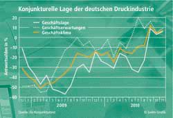 Dienstag 30. November 2010 - Die Einschätzungen zur aktuellen Geschäftslage in der Druckindustrie bleiben weiter positiv und sind wieder leicht um 3 Prozentpunkte gestiegen.