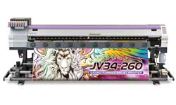 Neuheit im Groß- oder Grandformatdruck ist der Solvent- und Sublimationsdrucker JV34-260. A?ußerlich dem JV33-260 a?hnlich, weist er bei gu?nstigen Investitions- und Betriebskosten die doppelte Druckgeschwindigkeit auf.