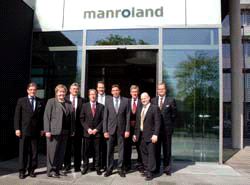 (v. l.): Esa Kulomäki, Technical Director Alma Manu Oy; Helvi Liukkaala, Managing Director Alma Manu Oy; Klaus Streit, Gebietsverkaufsleiter manroland AG; Timo Vesalainen, Director Purchase and Finance Alma Manu Oy, Tilman Scharf, Legal Counsel; Peter Kuisle, Vertriebsleiter Rollendrucksysteme manroland AG; Markku Ilmelä, Geschäftsführer manroland Nordic Finland Oy; Jussi Pekkarinen, Quality Manager Alma Manu Oy; und Mikko Korttila, General Counsel, Alma Manu Corporation.