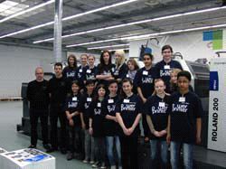Die Praxis lehrt am besten: 16 Schülerinnen ins manroland Ausbildungszentrum. Neben einer Führung durch das moderne Print Technology Center erhielten die interessierten Schülerinnen an einer Fünffarben ROLAND 200 mit Hochstapelausleger Einblicke in den Offsetdruck und die vielfältigen Veredelungsmethoden.