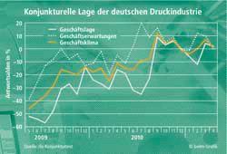 Freitag 29. April 2011 - Die Einschätzungen zur aktuellen Geschäftslage in der Druckindustrie bleiben im Saldo mit +2 % positiv. Die Nachfrageentwicklung im Vormonat wird weiter positiv beurteilt, die Produktionsentwicklung weist im Saldo aber wieder einen Negativwert auf. Die Beurteilung der Entwicklung der Auftragsbestände im Vormonat hat sich auf Null verschlechtert.