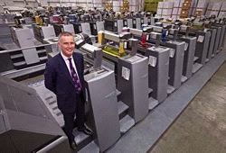 Gareth Roberts, Geschäftsführer von Bishops Printers, ist stolz auf seinen Drucksaal mit insgesamt 58 Speedmaster-Mittelformat-Druckwerken. Damit zählt Bishops Printers zur größten Heidelberg-B2-Druckerei in Großbritannien, wenn nicht sogar in ganz Europa.