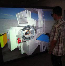 Freitag 23. September 2011 - Die vom Bremer Systemhaus ci-base vertriebene Visual Decision Platform (VDP) macht 3D-Modelle in Echtzeit virtuell erleb- und änderbar: Eine immersive Projektionsfläche ermöglicht das Eintauchen in die Druckmaschine. Betrachter ersticken Fehlkonstruktionen im Keim und beschleunigen Abstimmungsprozesse. Designphasen verkürzen sich und Änderungskosten entfallen.