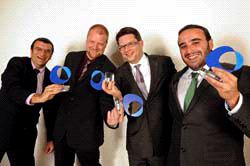 Die Gewinner des ALTANA Innovation Awards 2011 (v.l.n.r.): Dr. José Quibén (ACTEGA Artística), Michael Lucas (ACTEGA Rhenania), Dr. Rüdiger Wittenberg (ACTEGA DS) und Ricardo Lourido (ACTEGA Artística). Es fehlen: Dany Mängel, Sebastian Landeck und Heiko Hartstein.
