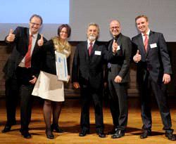 Samstag 03. Dezember 2011 - Die Brüder Neumeister GmbH hat beim Innovationspreis der deutschen Druckindustrie 2011 den dritten Preis in der Kategorie Technologie/Vorstufe gewonnen. Nela setzte sich mit seinem LogiStack, einem in den Plattenworkflow integrierten Plattenlagersystem, gegen 60 Mitbewerber im Bereich Technologie durch.