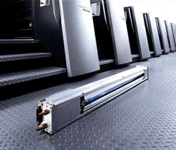 Der DryStar LE UV eignet sich sowohl für Druckmaschinen im reinen UV-Betrieb als auch für Mischbetrieb und ist daher mit seiner Flexibilität vor allem für Werbedruckereien interessant, die zu einem exzellenten Preis-Leistungs-Verhältnis die Vorteile des UV-Drucks nutzen und sich gegenüber dem Markt differenzieren wollen. Wie alle Trockner der DryStar UV-Serie von Heidelberg ist auch die neue energiesparende Version perfekt in die Druckmaschine integriert. Die speziellen URS (UV Reflection System)-Reflektoren filtern Wärmestrahlung sehr effizient aus und reduzieren wirkungsvoll den Wärmeeintrag in den Bedruckstoff. Dieses optimale Wärmemanagement schont temperaturempfindliche Materialien und sorgt für ein ideales Register. Der Versorgungsschrank des DryStar LE UV hat einen geringen Platzbedarf von nur 2,20 Metern Länge, ist also ideal für Druckereien mit nur wenig Raum.