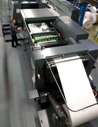 Der Breitbahn-Rollenquerschneider CutStar verbindet die Kostenvorteile des Rollenoffsets mit der Flexibilität des Bogenoffsets. Chesapeake setzt drei leichtgewichtige Grammaturen ein, wobei schnell und einfach von einer Grammatur auf die nächste gewechselt werden kann. Der Bedruckstoff wird von der Rolle abgewickelt und im CutStar auf exakt das gewünschte Format geschnitten. Das vermeidet unnötige Makulatur und vermeidet Umweltbelastung. Bei einem Auftragswechsel kann entweder die Rolle in wenigen Minuten ausgetauscht oder der CutStar auf Knopfdruck vom Anleger abgekoppelt werden. Die Druckmaschine arbeitet wie gewohnt – im Bogenbetrieb. Die Bedienung des CutStar ist dank des hohen Automatisierungsgrades besonders einfach.