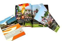 Das ZDF stellt hohe Ansprüche an die eigene Markenführung. Das schlägt sich unter anderem in der Präsentation des Unternehmens nieder. Die neu aufgelegte Imagebroschüre im Format 188 x 260 mm beeindruckt mit einem ungewöhnlichen Aufbau, einer bildstarken Gestaltung sowie mit hoher Qualität im Druck und in der buchbinderischen Verarbeitung. So hat fast die Hälfte der 60 Innenseiten eine nach rechts ausklappbare verkürzte Seite, deren Motiv identisch ist mit der darunter liegenden Seite. Da sich die Motive auf der Vorder- und Rückseite wiederholen, war im Druck eine äußerst exakte Farbführung erforderlich. Damit ein nahtloser Übergang der doppelseitigen Motive mit den Klappseiten sichergestellt ist, wurden die Seiten vor dem Falzen in einem separaten Arbeitsgang gerillt. Auf diese Weise konnten die Seiten maßgenau verarbeitet werden.