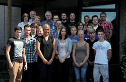 Die Auszubildenden versammeln sich erstmals mit ihren neuen Kollegen zum Gruppenbild.