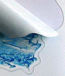 Die nach DIN 4102 B1-zertifizierte, 100µm starke Weich-PVC-Folie ist gedacht für Innenanwendungen auf ebenen oder eindimensional gebogenen Oberflächen. Bei trockenem Wetter sind auch kurzzeitige Außeneinsätze möglich. Beim Bedrucken sichert das PE-Abdeckpapier mit 140 g/qm eine gute Planlage und einen einwandfreien Materiallauf in UV-Offset-Maschinen und Siebdruckanlagen. Im Gegensatz zu einfachen Kraft-Papieren reagiert es praktisch nicht auf Luftfeuchtigkeitsschwankungen.
