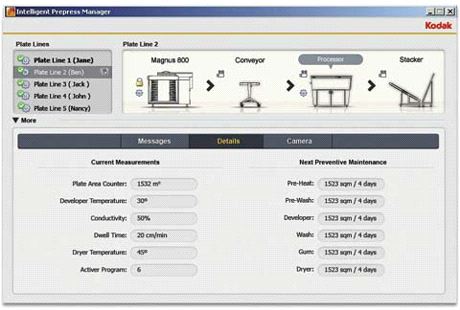 Der Intelligent Prepress Manager 2.0 verfügt über Überwachungs- und Berichtsfunktionen für komplette CTP-Linien und versetzt Anwender in die Lage, proaktivere Entscheidungen auf der Grundlage konkreter Daten zu treffen. Dank intelligenter Warnmeldungen können Anwender auf ihren CTP-Linien stets in höchster Qualität produzieren und gleichzeitig insgesamt die betriebliche Effizienz optimieren.