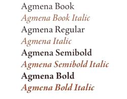 Montag 26. November 2012 - Linotype bietet die neue Agmena-Schriftfamilie in den vier Strichstärken Book, Regular, Semibold und Bold sowie den jeweiligen Italic-Varianten an. Zunächst hauptsächlich für den Werksatz vorgesehen, eignet sie sich durch ihre gute Lesbarkeit auch für die Darstellung kleiner Schrift beispielsweise auf Bildschirmen.