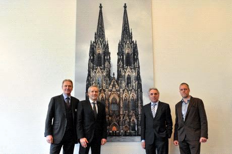 Donnerstag 21. Februar 2013 - Der drei Meter hohe, digitale Kunstdruck des Kölner Doms fesselte die Besucher auf der photokina 2012. Nun wurde das Werk des Fotografen Marco Brunetti für einen guten Zweck an die Stadt Köln übergeben. Der Dom ist künftig auch in den Hallen der Koelnmesse zu bewundern.