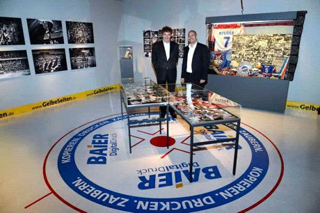 Freitag 22. Februar 2013 - In Mannheim kann man Eishockey jetzt auch im Museum erleben. Die Reiss Engelhorn Museen REM zeigen im Rahmen der Sonderstellung "75 Jahre Eishockeystadt Mannheim" die traditionsreiche Vereinsgeschichte der "Mannheimer Adler". Baier Digitaldruck hat das aufwändige Ausstellungskonzept drucktechnisch produziert und die Exponate in Szene gesetzt.