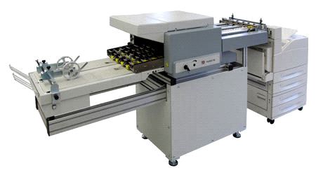 Das Inline-Falzsystem zeichnet sich dadurch aus, dass mittels eines Office-Druckers individuell erstellte Dokumente (Lieferscheine, Mailings) direkt weiterverarbeitet werden können. Das gedruckte Dokument wird hierfür vom Ausrichttisch der Falzmaschine übernommen und gefalzt. Durch die vorherige Ausrichtung wird stets ein präziser Falz gewährleistet. Optional kann das Dokument mit einem Etikettierer anschließend noch verschlossen werden.
