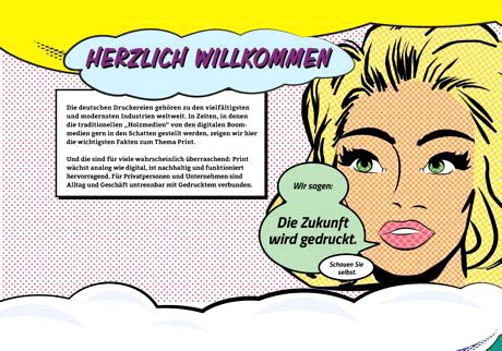 Print ist auch digital. Deshalb findet man auch alle relevanten Fakten kompakt vereint im Internet. Auf www.die-zukunft-wird-gedruckt.de zeigen die Verbände ein Best-Of der Faktensammlung. Ansprechend illustriert im Pop-Art-Stil ist die digitale Infografik Unterhaltung und Information zugleich.