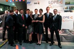 Diese Detailtreue, das professionelle Projektmanagement und das stimmige Gesamtpaket waren es schlussendlich auch, was die Jury der diesjährigen „University Demonstrator Competition“ der OE-A überzeugte, und der Hochschule München damit wieder einen renommierten Preis einbrachte. Am Ende war es Herrn Dr. Wolfgang Schmidt von der Felix Schoeller Service GmbH & Co. KG vergönnt, dem Team zum Auftakt des Galadinners der LOPE-C 2013 Mitte Juni den Preis zu überreichen.