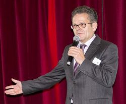 Chefs der Digitaldruck-Lieferanten auf einer Bühne
