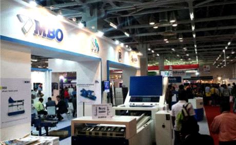 Gemeinsamer Messestand von MBO und KBA auf der Pamex in Indien, 14.-17. November 2013.