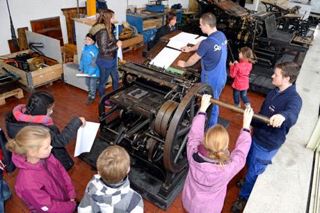 Dass Drucken früher viel Muskelkraft benötigte, erfuhren die Teilnehmer bei der Produktion ihrer eigenen Zeitung an einer historischen Druckmaschine