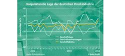 Im gesamten Verarbeitenden Gewerbe wird die aktuelle Lage in diesem Monat erneut besser eingeschätzt: Der Antwortsaldo ist auf 28 % gestiegen. Zwar ist die Beurteilung damit im gesamten Verarbeitenden Gewerbe immer noch besser als in der Druckindustrie, die Differenz im Antwortsaldo ist jedoch auf 14 Prozentpunkte geschrumpft.