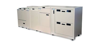 Hefter Systemform präsentiert das neue Broschürenfertigungssystem AF 2000S von Plockmatic erstmals in Deutschland. In der Vollausstattung besteht es aus folgenden 5 Modulen: 2-fach Großraumfeeder (AF 602), 2-Seitenschneider mit Rillfunktion (CST 2000), Heft- und Falzmodul mit Hohner-Heftköpfen (BM 2000S), Frontschneider (FTR 2000) und Rückenpresseinheit (SFQ 2000). Ein hervorstechendes Merkmal des Systems ist, dass damit automatisch ein 3-Seitenbeschnitt von Broschüren durchgeführt werden kann. Das einfach einstellbare und zu bedienende Großraumfeedermodul AF 602 hat zwei übereinanderliegende Zuführungen mit einer Stapelhöhe von jeweils 270 mm, also zusammen 540 mm. Mit Hilfe der Kaskadefunktion kann das volle Volumen beider Zuführungen genutzt werden. Mit diesem blasluftunterstützen Feeder werden auch größere Mengen schnell – mit bis zu 15.000 Blatt/h – in einem kontinuierlichem Produktionsprozess verarbeitet. Dieses Modul hat auch eine Merge-Funktion: So können z.B. aus einem Fach Deckblätter zugeführt werden und aus einem anderem vorsortierte Broschürensets.