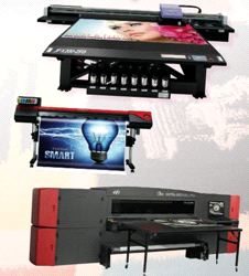 Sonntag 21. September 2014 - Der Markt für großformatige Drucke ist äußerst dynamisch. Mit innovativen Anwendungen finden Dienstleister immer neue Geschäftsfelder für ihre Produkte. Ob Banner, Poster oder Druck für die Innen- und Außenwerbung, immer häufiger kommen digital gedruckte Produkte zum Einsatz. Und auch in der Werbepraxis werden die digitalen Drucke der LFP-Systeme immer öfter eingesetzt und ersetzen die klassischen Produkte des Sieb- und Flexodrucks. In der folgenden Marktübersicht haben wir 72 Drucksysteme mit Produktionsbreiten zwischen 1,50 m und 2,60 m von insgesamt 14 Herstellern entsprechend ihrer Leistungsfähigkeit vergleichend nebeneinander gestellt
