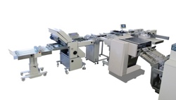 Das System ist auf das Zuführen, Zusammentragen und Falzen von Dokumenten mit unterschiedlichen Ausgangsformaten ausgelegt. So kann die Beschickung entweder durch einen Sauganleger, Flachstapelanleger oder endlos von der Rolle erfolgen. Möglich ist die gemischte Verarbeitung von gefalzten und ungefalzten Dokumenten beispielsweise im Format A3 und A4. Der Abruf der Dokumente erfolgt dabei entweder über Vorwahl im Bedienpult oder über einem auf den Dokumenten befindlichen Code. Vor dem Sammel- und Falzvorgang erfolgt der Randbeschnitt auf dem Schneidmodul CM 52. Dieses ist mobil und höhenverstellbar, so dass es auch innerhalb anderer Maschinenkonfigurationen eingesetzt werden kann.