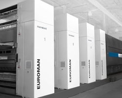 Die 32- oder 48-Seiten Heatset-Rollenoffsetmaschine im Doppelumfang mit einer Papierbahnbreite von bis zu 1.300 Millimetern bietet den automatisierten Plattenwechsel PPL, was die Rüstzeit um rund 50 Prozent verkürzt. Für die Regelung von Farb- und Schnittregister hat manroland web systems hochwertige Inline Control Systeme entwickelt. Sie sorgen automatisch und zuverlässig für konstante Qualität und geringe Makulatur. Der automatische Papierbahneinzug ist mit 50 Metern pro Minute der schnellste am Markt und somit ein Garant für kurze Rüstzeiten und höchste Verfügbarkeit. Das Präzisionsfarbwerk der Euroman kombiniert bewährte Technologien für eine hohe Druckqualität. Die manroland web systems Falzwerke zeichnen sich insbesondere durch höchste Zuverlässigkeit, Geschwindigkeit, Flexibilität und Präzision aus – für Falze in höchster Qualität.