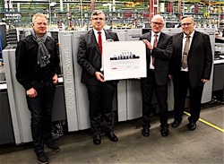 „Unser Erfolg basiert darauf, dass wir stets den Markt beobachten und die Bedürfnisse der Kunden kennen“, erklärt Ralf Wagner, Produktionsleiter im Heilbronner Werk. „Die Anforderungen an die Produkte ändern sich und so sehen wir heute einen steigenden Bedarf an kleinen Auflagen sowie an vielfältigen Veredelungen“. Aus diesem Grunde wird demnächst eine Speedmaster SX 52 Vierfarbendruckmaschine mit Wendung und Lackierwerk installiert. Die Maschine ist mit der zonenlosen Farbwerktechnologie Anicolor ausgerüstet, die für kürzeste Einrichtezeiten, bis zu 90 Prozent weniger Makulatur und hohe Produktivität steht. Darüber hinaus enthält die Maschine das 40.000. Druckwerk, das von der Baureihe Speedmaster SM 52/SX 52 im Format 35 x 50 cm hergestellt worden ist. „Mit der neuen Druckmaschine wollen wir hauptsächlich Umschläge für Schulhefte und Deckblätter für College-Blöcke sowie Kalender herstellen. Dies in kleinen Auflagen und vor allem auch mit spezieller Veredelung, beispielsweise mit Drip Off-Effekten“, bestätigt Ralf Wagner.