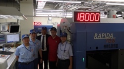 Seit September produzieren bei Tosho Printing, einer Tochtergesellschaft der weltweit agierenden Toppan Gruppe, je eine hoch automatisierte Vier- und Fünffarbenmaschine der High-End-Baureihe Rapida 106. Ausgestattet mit Kamerasystemen zur Überwachung des Bogenlaufs, Plattenzylinder-Einzelantriebstechnik DriveTronic SPC, kombinierten Gummituch-, Druckzylinder- und Walzenwascheinrichtungen CleanTronic Impact, Emission Extraction System (EES), Autoregister ErgoTronic ACR, QualiTronic ColorControl zur Qualitätsüberwachung und -regelung, kleine Messstreifenhöhe zur besseren Ausnutzung des Papierformates, DataMatrix-Select und dem Produktionsmanagement-System LogoTronic Professional haben die beiden neuen Rapidas die Messlatte für die Produktivität im Unternehmen nach oben gesetzt.