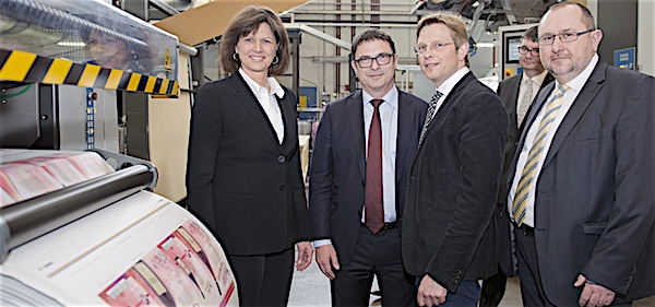 Bei der Besichtigung des Würzburger Werkes ließen sich Ilse Aigner und Oliver Jörg die hochmodernen Anlagen für die Präzisionsbearbeitung von tonnenschweren Druckmaschinen-Komponenten erläutern. Bei der anschließenden Präsentation der derzeit weltgrößten Inkjet-Rotationen für den digitalen Dekor- und Wellpappendruck konnten sich die Gäste von der Innovationskraft der fränkischen Ingenieure überzeugen. Angesichts immer individuellerer Verpackungen und Kundenwünsche sieht Christoph Müller gute Zukunftsperspektiven im noch jungen Geschäftsfeld Digitaldruck.