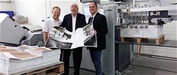 Maschinenführer René Targosz, und die beiden Geschäftsführer Martin und Alexander Kirchner (von links nach rechts) sind mit der neuen Stahlfolder TH 82-P sehr zufrieden. Die Falzmaschine setzt höchste Qualität bei höherer Leistung um.