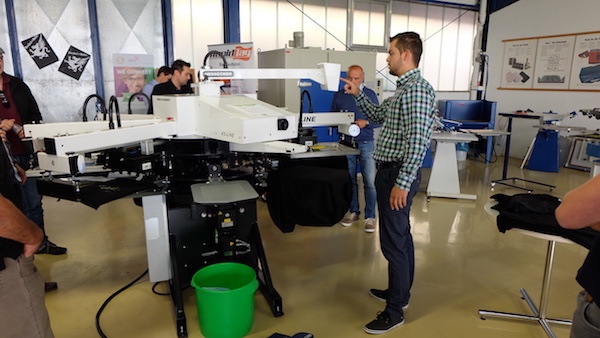 Im anschließenden praktischen Teil wurden Schablonen beschichtet und die Teilnehmer konnten sich dann live von den Vorteilen des neuen Belichters „Luxdryer LED“ überzeugen. Passend zum Thema wurden T-Shirts mit CHT Äzdruckfarben, in einem 4 Farb Raster gedruckt. Hierbei kam die neue Hebbecker XS-Line zum Einsatz die durch ihre kompakte Bauweise für Aufsehen sorgt. Am Ende konnte jeder Teilnehmer außer viel Fachwissen auch einen perfekten Rasterdruck mit nach Hause nehmen.