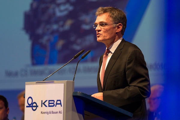 Mittwoch 24. Mai 2017 - Neben der Erläuterung der positiven Unternehmensentwicklung im Geschäftsjahr 2016 und im ersten Quartal 2017 (siehe dazu Pressemitteilungen vom 22.03.2017 und vom 09.05.2017) durch den Vorstandsvorsitzenden Claus Bolza-Schünemann bestimmte die Wachstumsstrategie des breit aufgestellten Druckmaschinenbauers die vom Aufsichtsratsvorsitzenden Dr. Martin Hoyos geleitete 92. Hauptversammlung der Koenig & Bauer AG (KBA). Weitere Tagesordnungspunkte beim Aktionärstreffen im Vogel Convention Center (VCC) in Würzburg waren die Entlastung von Vorstand und Aufsichtsrat, die Wahl eines neuen Aufsichtsratsmitglieds sowie die Schaffung eines neuen genehmigten Kapitals.