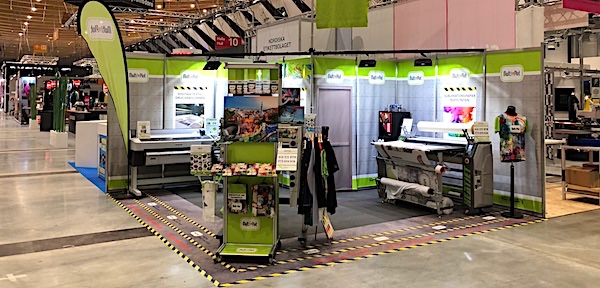 Neben einer Videopräsentation der voll integrierten Prozesskette (vom Entwurf bis zum fertigen Endprodukt) konnten sich die Besucher auch einen weiteren wichtigen Teil des Verfahrens live am Stand anschauen. Gezeigt wurde der Druck auf dem Thermosublimationsdrucker SureColor SC-F6200 und die anschließende Fixierung auf dem Heißtransferkalander HeatJet 44evo2. Multi-Plot führte auch erstmalig den Digitaldruck auf Handtuch- und Fleecematerial vor. Der Drucker aus dem Hause EPSON bildet im Zusammenspiel mit dem HeatJet-Kalander eine ideale und preiswerte Einsteigerlösung mit einer Transferbreite bis zu 110 cm. Mit dieser Maschinenkombination lassen sich farbbrillante Textilprodukte vielseitiger Art produzieren. Wer lieber kleinere Drucksachen anfertigt, für den ist der HeatJet 24evo1 mit einer Transferbreite von ca. 65 cm geeignet. Ein Tischgerät, welches einfach zu handhaben ist und zuverlässig arbeitet.