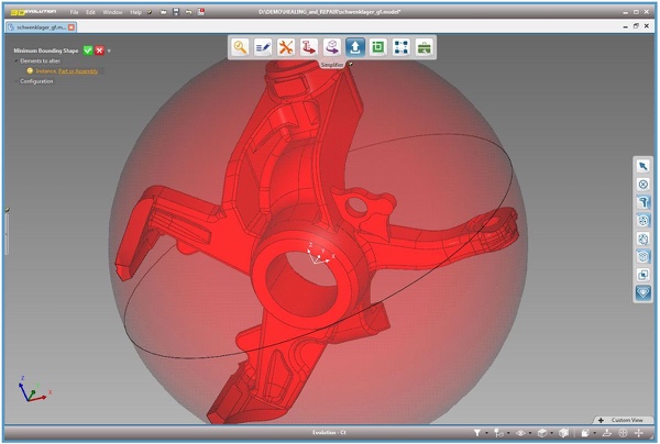 Das deutsch-französische Software-Unternehmen CoreTechnologie GmbH (CT) hat die renommierte Software 3D_Evolution Simplifier um eine Innovation erweitert: Als erste Software am Markt erlaubt die neueste Version des Simplifiers ab sofort die vollautomatische Berechnung des Durchmessers der kleinsten Kugel, die ein Bauteil oder eine Baugruppe umgeben. Der Simplifier zur automatischen Erzeugung von leichten Hüllgeometrie-Modellen erlaubt mit der neuen Funktion eine zeitsparende, automatisierte Berechnung der optimalen Verpackung.
